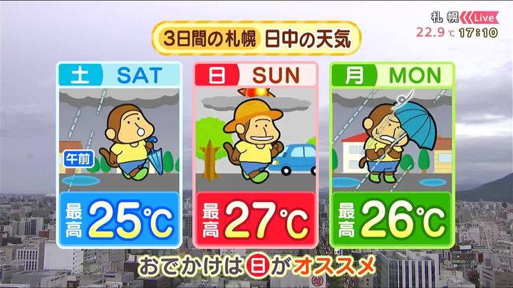 3日間の札幌です! 土日月の天気をもんすけでお伝えします!