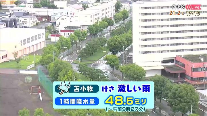 雨が降ったりやんだりの苫小牧、今朝は局地的に雨雲が発達し、1時間に48.5ミリの激しい雨が降りました。今朝ほどではないですが、あす30日(土)にかけても雨の降る時間があります。