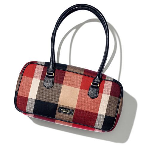 赤チェック&横長形はこの秋のトレンド大本命♡ コーデの差し色として取り入れて。