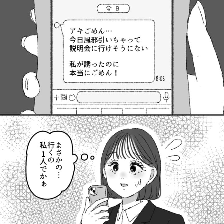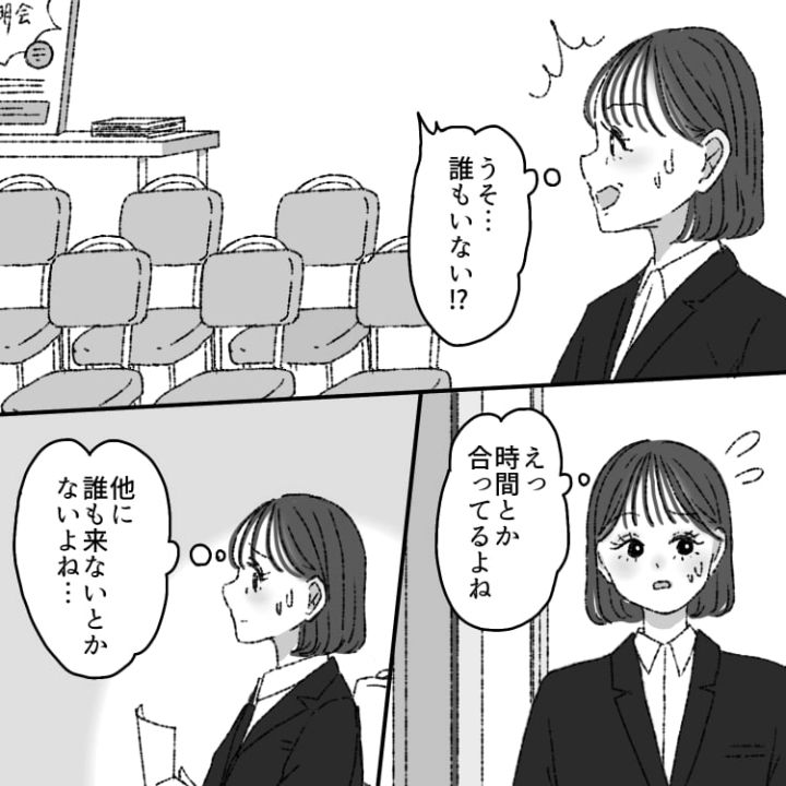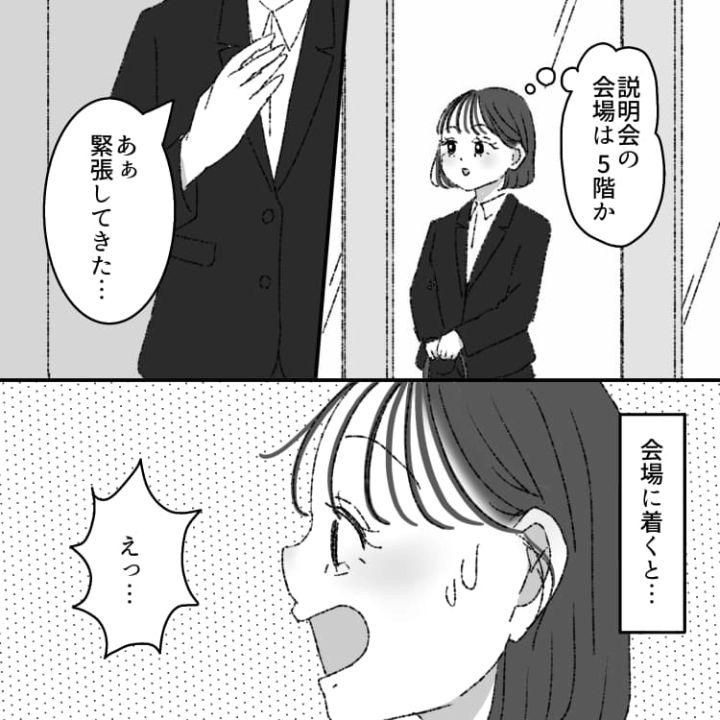 3. 【就活】企業の説明会にひとりで参加した主人公!会場に着くと“ありえない光景”を目の当たりにして...!?