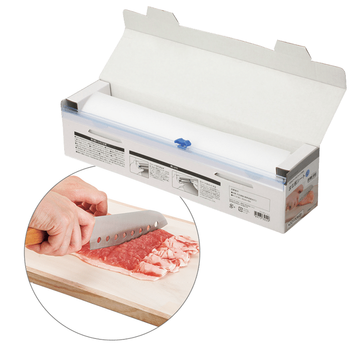 まな板の上に置いて使うカッティングシート。キレイに切れるスライドカッター付きで使いたい長さで自由にカットできる。魚や肉を切るときにはもちろん、脂分の多いものをカットしたいときにも便利。お弁当を作るときやアウトドアでの調理にも重宝する。Mサイズ¥399(ニトリ)