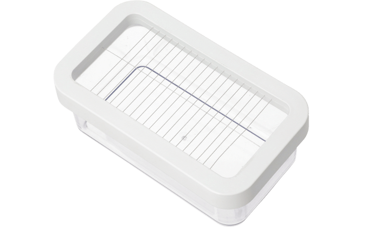 約5gのサイズにカットできるようワイヤー部が付属したバターケース。バターを入れ上からワイヤー部分を押すだけで均等に切れ、そのまま冷蔵庫に収納可能。¥999(ニトリ)