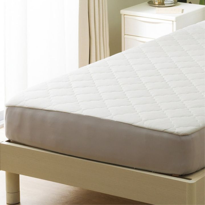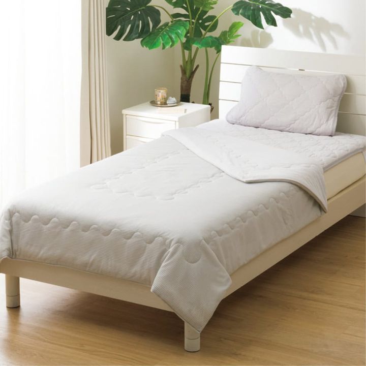 夏用の接触冷感の面と、それ以外に使えるワッフル面の両面仕様のベッドパッド。抗菌防臭機能があり嫌な臭いも防いでくれる。シングル¥2,990(ニトリ)