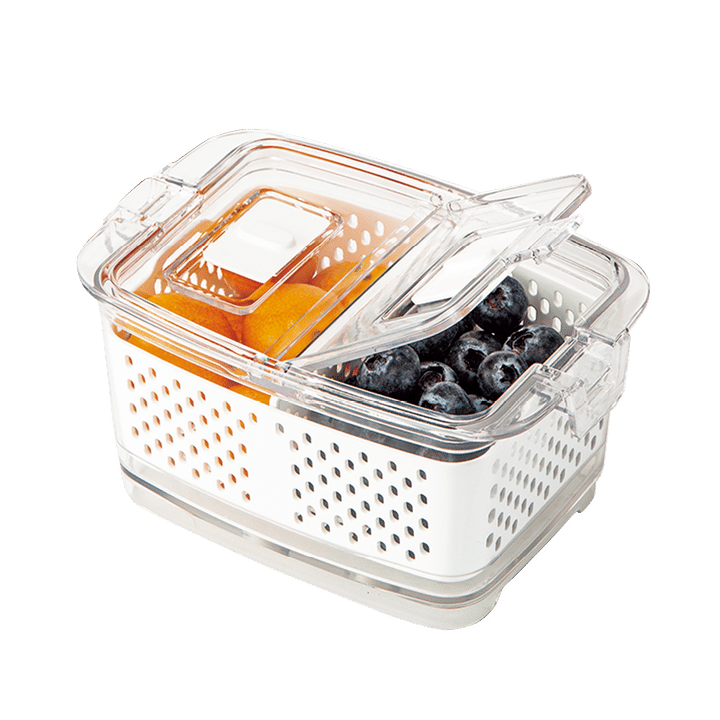 かごと2重になっているので、水切りができて野菜や果物が新鮮な状態でキープできるスグレモノ。朝食用の果物など、サッと出したいものを入れておきたい。¥799~(ニトリ)