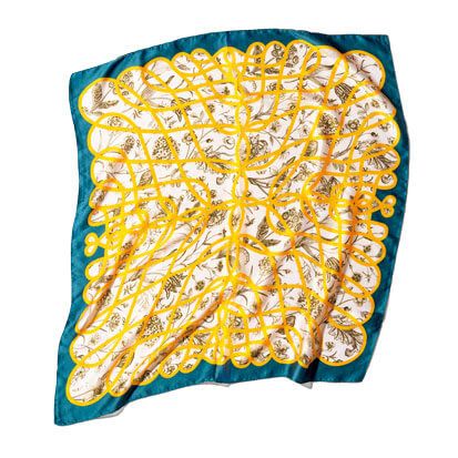 美発色スカーフで通勤コーデにロイヤルな気品をプラス