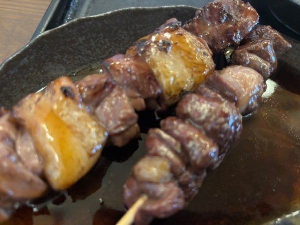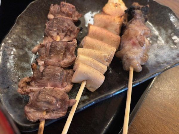 牛こりこり、ぶた大トロホルモン、砂肝は塩で。混んでいる中、スタッフさんの対応が丁寧で味付けも相談にのってくれました。