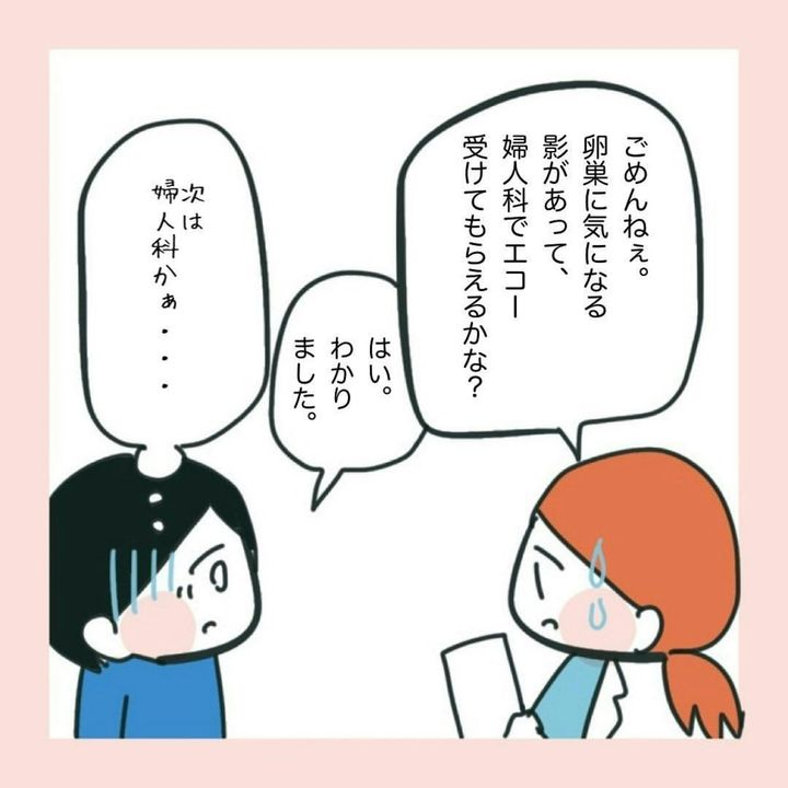 すると、その腰痛は「尿管結石」からくる痛みなのでは?という検査結果が。大きな病気でないことに安心していた苗ですが、その後、卵巣に気になる影がある、と言われ再び検査を受けることになります。
