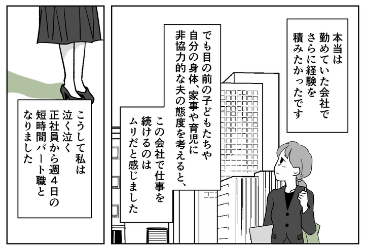 <育児の不公平感にムカッ>家庭に無関心な夫。泣く泣く退社して時短パートになった私【まんが】