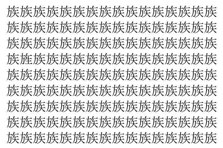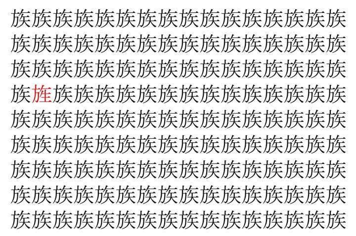 画像の中には、「族」という漢字が縦に9行、横に16個並んでいます。 全部で144個となりますが・・・、そのうち1つは「異なる漢字」となってますよ!!