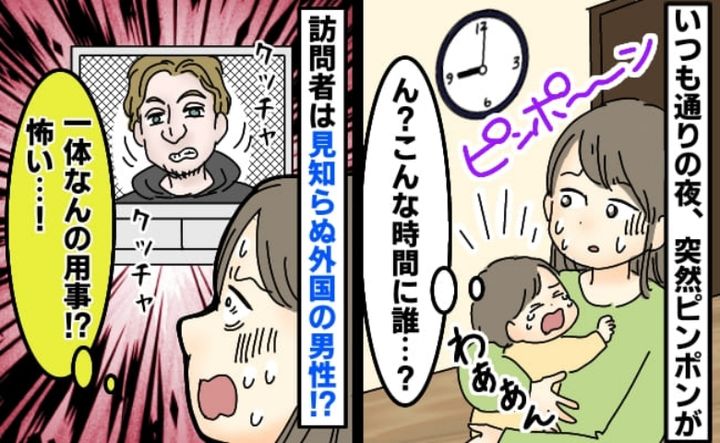 こんな時間に誰だろうと思いつつ、夫とインターホンの画面を見てみると、見知らぬ外国の方の姿が映っていました。金髪の若い男性で、クチャクチャとガムを噛んでいるようでした。1歳の娘の泣き声がうるさいと文句を言われるのか、それとも、最近は外国人男性による事件がニュースになっていたので、何か犯罪に巻き込まれるのかなど、いろいろな考えが頭の中に流れました。
