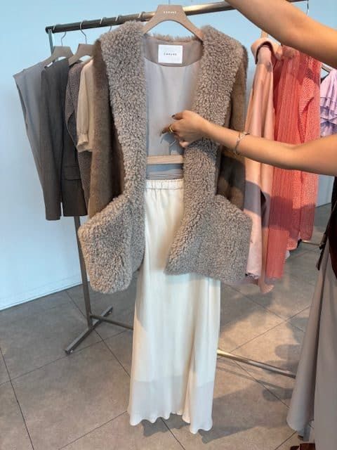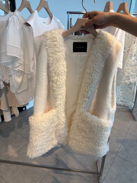 シンプルな白Tに合わせたいモコモコジレも気になりました!異素材を楽しみたいので、テロッとした女っぽいロングスカートに合わせたりしても◎。