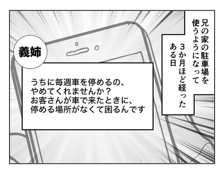 3. 【義姉と!駐車場トラブル】突然のメッセージ「停めるのやめて!」はぁ~!?#4コマ母道場