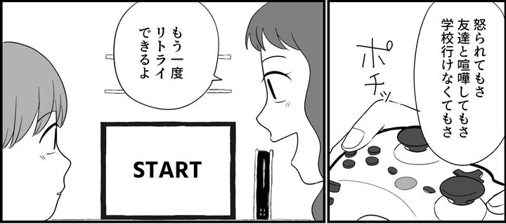 「親は怒るものだよ。私だって、お父さんやお母さんにたくさん怒られて育ったよ?」と言うと、リクは驚いていました。ゲームで、何回ゲームオーバーしてもやり直しができるのと同じように、人生だって、何度でもやり直しができる。やる気さえあれば! それで、次はもっと強くなって、今度こそ敵を倒す! 私はそうやってリクを支えていたのです。