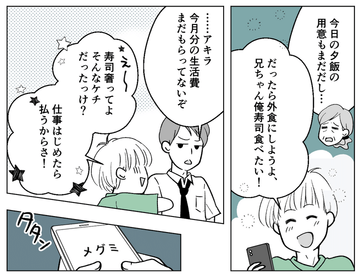 最初は母も俺も、弟が帰ってきてまた一緒に住めることが嬉しくて、何でもしてやりたかったのですが……。俺だって限界があります。ただでさえ、離婚して一馬力になったことで収入が少なくなっているのだから。