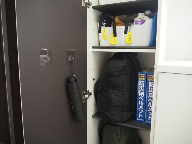 我が家は、玄関の下駄箱の一部に、非常用の持ち出しリュックや、子どもたち用の防災サコッシュ、災害用のヘルメットを収納しています。また大事なものは保管場所を家族と共有しておくことも防災だと思います。
