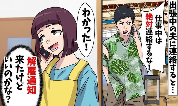 私「夫が…解雇!」夫「出張中は連絡するな!」会社から通知が届いたと夫に連絡!おーけー♪ガチャ切りされた結果