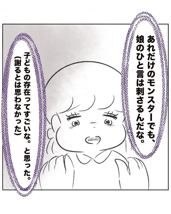 ゆかちゃんママが謝るとは思っていなかったまるさんは、ゆかちゃんママが去った後「あれだけのモンスターでも、娘のひと言は刺さるんだな。子どもの存在ってすごいな」と思いました。