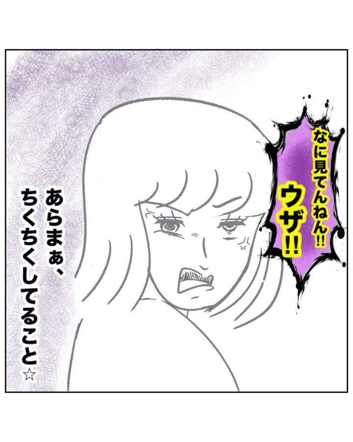 去り際に「なに見てんねん!ウザ!」と怒りに満ちた表情で吐き捨てたゆかちゃんママを見て「あらまぁ、ちくちくしてること」と呆れるまるさん。