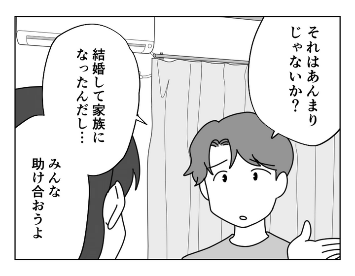 カオリさん(35)は、家族4人で暮らす小学生の男の子2人のママ。現在パート勤めで家計を支え、マイホームのための貯金をがんばっています。しかしある日、義姉から「末期ガンの母(義母)のために月1万円の援助をしてほしい」と連絡が。家計から出してほしい夫・ヒロムさんに対し、カオリさんは「ヒロムのお小遣いの範囲内で」とキッパリNO。副業はできない、かといってお小遣いはなくしたくないし生活保護を申請させるのも……というヒロムさんにイライラするカオリさん。夫婦の話し合いは平行線です。