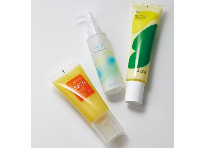 左から:ミネラル豊富なプレミアムソルト配合。すっきりクールな使用感のヘアスクラブ。AROMATICA ローズマリー&オレンジスカルプスクラブ 165g ¥2,310※数量限定(ビープル)シャンプーに混ぜるだけでクール感をプラス。ミント セラム フローズンエッセンス 120ml ¥2,420※美容室専売品(アリミノ)じわじわ伝わるクール感で快適なバスタイムに。オサジ クール スキャルプ クレンジング Ryo〈リョウ〉 135g ¥2,970※数量限定(OSAJI)