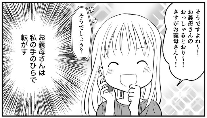 終わりのないお義母さんの口出しに疲れた私は決めました。お義母さんを私の手のひらで転がしてやります……!