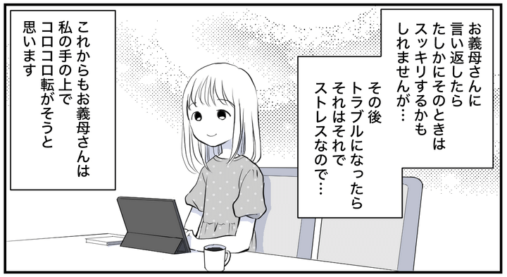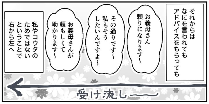 それからはお義母さんになにを言われても、私やコウタのためではないということで、右から左へ……さらっと受け流します。