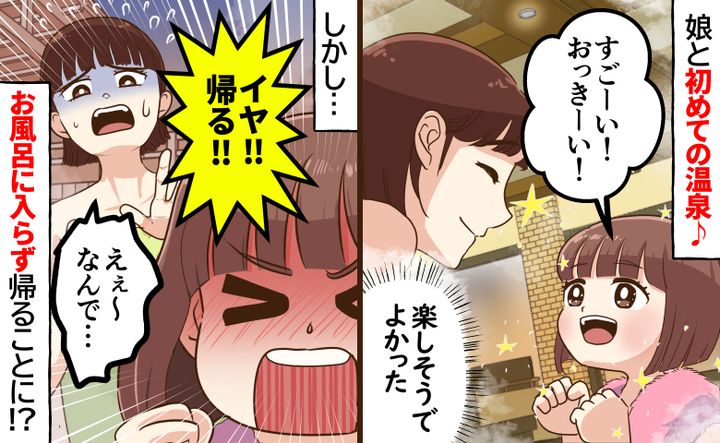 「イヤ!」初めての温泉に目を輝かせる娘。しかしお風呂に入らず帰ることに…楽しそうだったのになぜ?