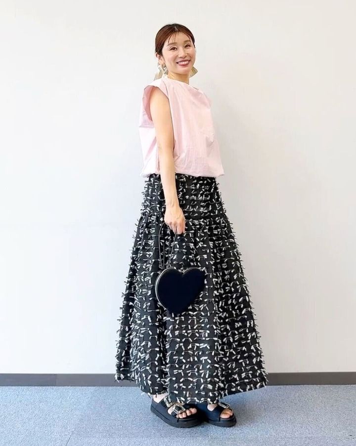 ①【157cm 田代さん】スカートを合わせた大人のフェミニンコーデ