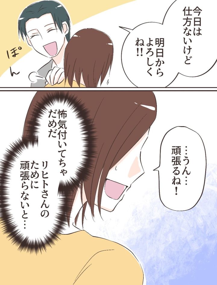 そして、「今日は仕方ないけど、明日からよろしくね!!」そう言って肩をぽんと叩くリヒトさんに、「怖気づいてちゃだめだ。リヒトさんのために頑張らないと・・」気持ちを奮い立たせて「・・うん・・頑張るね!」と答えました。