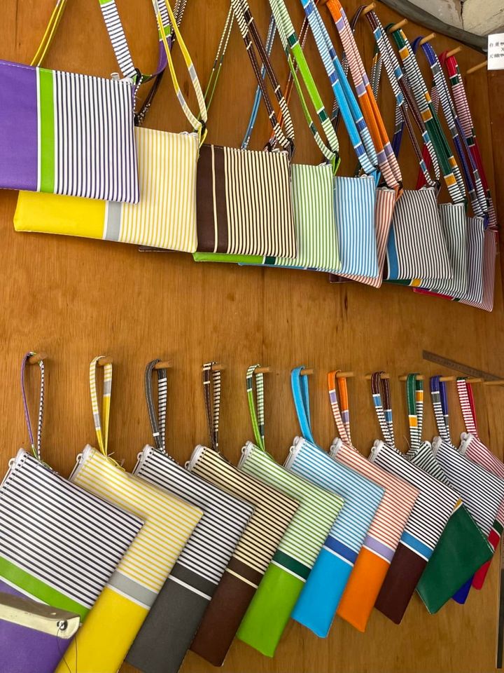 食べてばかりで全くお買い物をしていないことに今さらながら気づいた我々。素敵な頒布のバッグを買えるお店があるという情報を得て「台東頒布行」へ。台湾みやげの定番として有名な細かいメッシュのバッグやポーチもいいけれど、ちょっと違ったものが欲しいな、という方はぜひこちらへ。カラフルな頒布素材のアイテムが揃います。絶妙なカラバリなので、どの色を選ぶか迷ってしまいますが、なぜか今回のチームは皆グリーンが好き。みさとさんが下の写真で持っているグリーン×白のバッグをお揃いで購入しました(帰国後も大活躍です!)。 お値段も手ごろなので、おみやげにもちょうどいいと思いますよ。