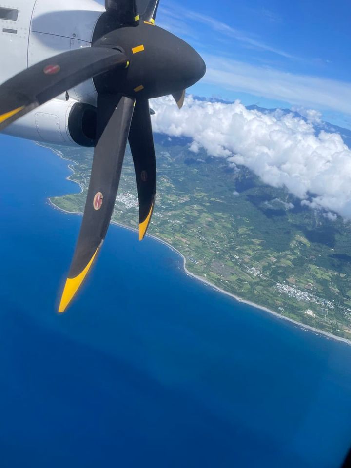 台東から台北へはプロペラ機で。海が美しすぎます!