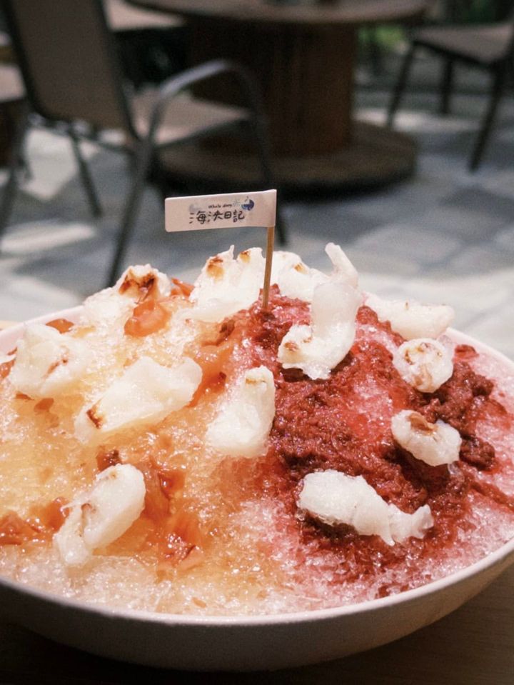 サーフボードを模した看板が可愛らしいカフェ「Whale diary」の門をくぐると、素敵なガールがお出迎え。オススメを聞くと「ライチとバラの花のかき氷」とのことで早速オーダー。ローズジャムのようなものかしら、と勝手に想像していましたが、もっとずっと酸っぱくて、シャリシャリの氷と一緒に口に入れると、暑さが瞬間的にすっと引いていくようなさわやかさ。出会ったことのないお味なので、台東に行かれた際はぜひトライしてみてください。
