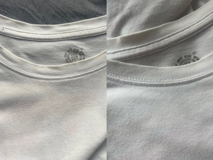 中村さん直伝の洗濯方法で、本当に黄ばみなどが落ちるのか気になりますよね。なので、試しに筆者の黄ばんだTシャツを洗ってみました。単品ではなく、他の洗濯ものと一緒に洗ってみたのですが、一回でだいぶ黄ばみが落ちていますよね? 特殊な洗剤を使ったわけでも、最高級の洗濯機で洗ったわけではないのに、この仕上がり。いかに普段の自分の洗濯がテキトーだったのか思い知らされました(笑)。