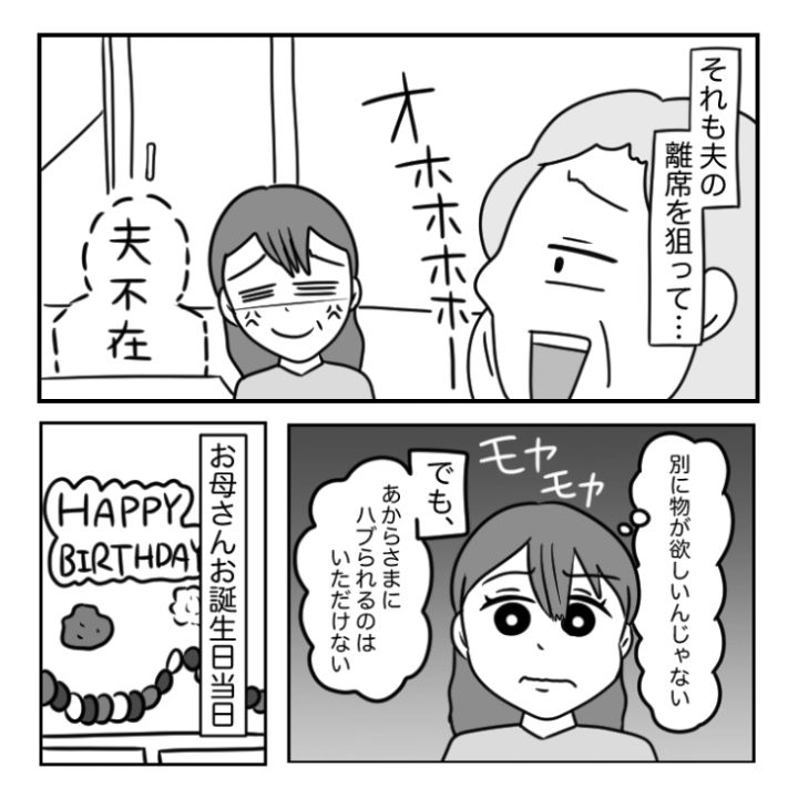 夫のおかげで義母と顔を合わせることもなくなり平和な毎日を送ることに成功した主人公でした・・・。