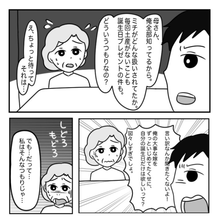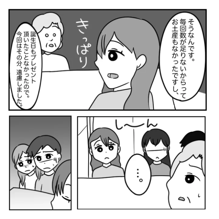 3. 「数が足らないわ。あなたはなしね♡」私の前で親戚にお土産を渡すが私だけスルーの義母!誕生日プレゼントでも同じことをされたので同じことをし返してみた結果・・・