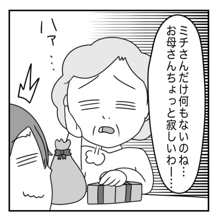 「数が足らないわ。あなたはなしね♡」私の前で親戚にお土産を渡すが私だけスルーの義母!誕生日プレゼントでも同じことをされたので同じことをし返してみた結果・・・
