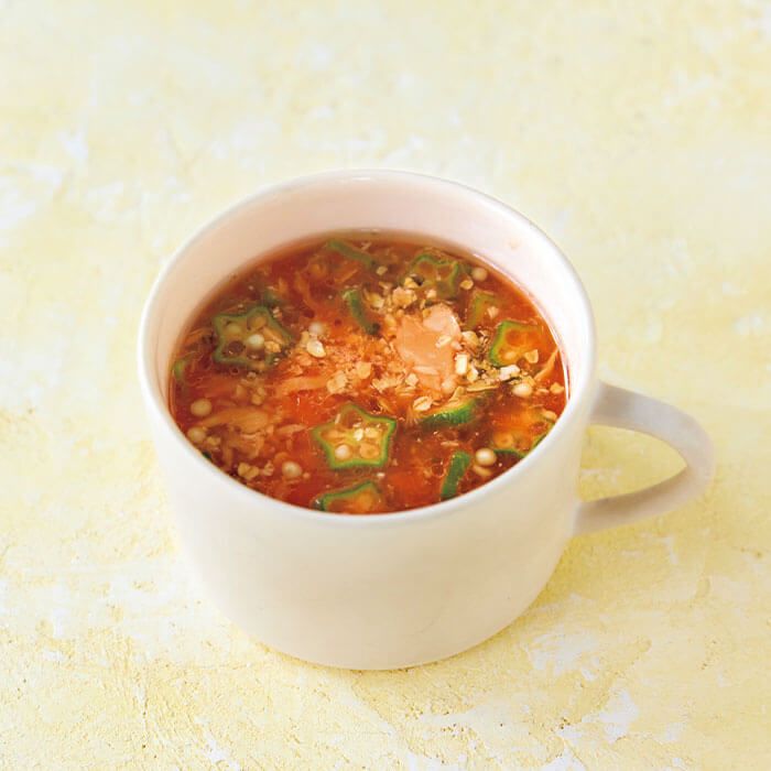 腸活ポイント:オクラの粘りで腸内環境を整え、オートミールの食物繊維で悪玉菌の抑制を促します