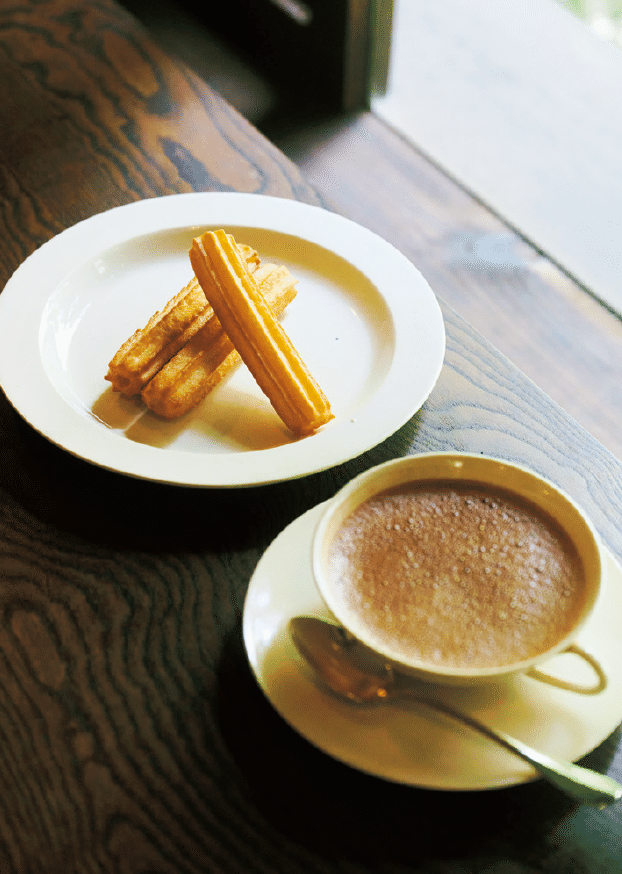 揚げ立てのチュロスとホットチョコレートは、スペインのポピュラーな朝ごはん。そのおいしさを知ってほしいと始めた隠れ家的なカフェ。静寂のひとときを過ごせる。