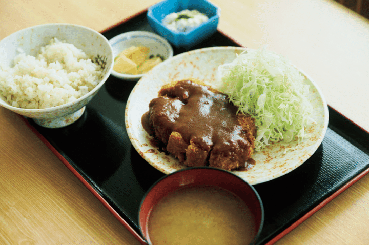 ソースはデミグラス。「とんかつソースを足して味変するのもおすすめです」と安藤さん。とんかつ定食1,300円。