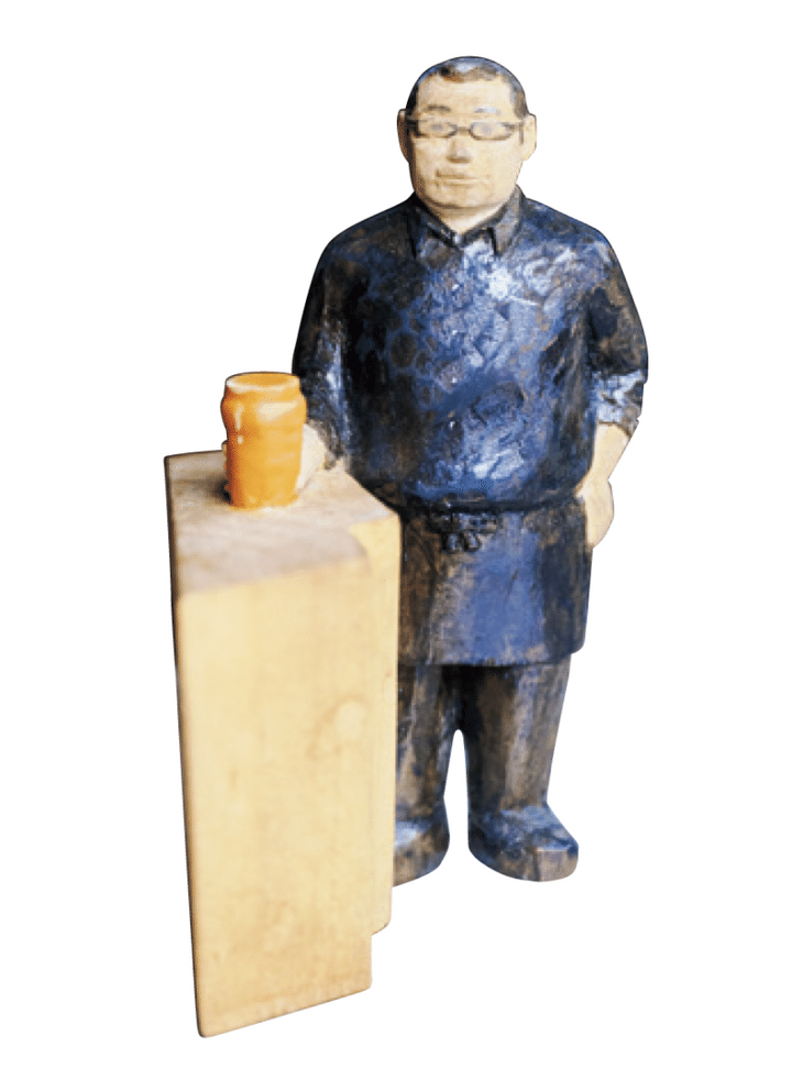 東京芸術大学関係の常連も多い。こちらは、卒業生による石井さんの木彫りの人形。