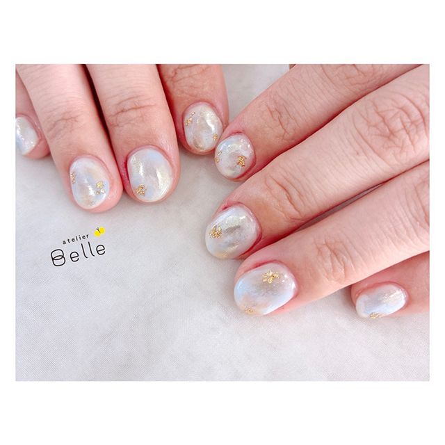 3. 【ニュアンスネイル】爪を伸ばさない人にも。ホワイトベースで透明感たっぷり!