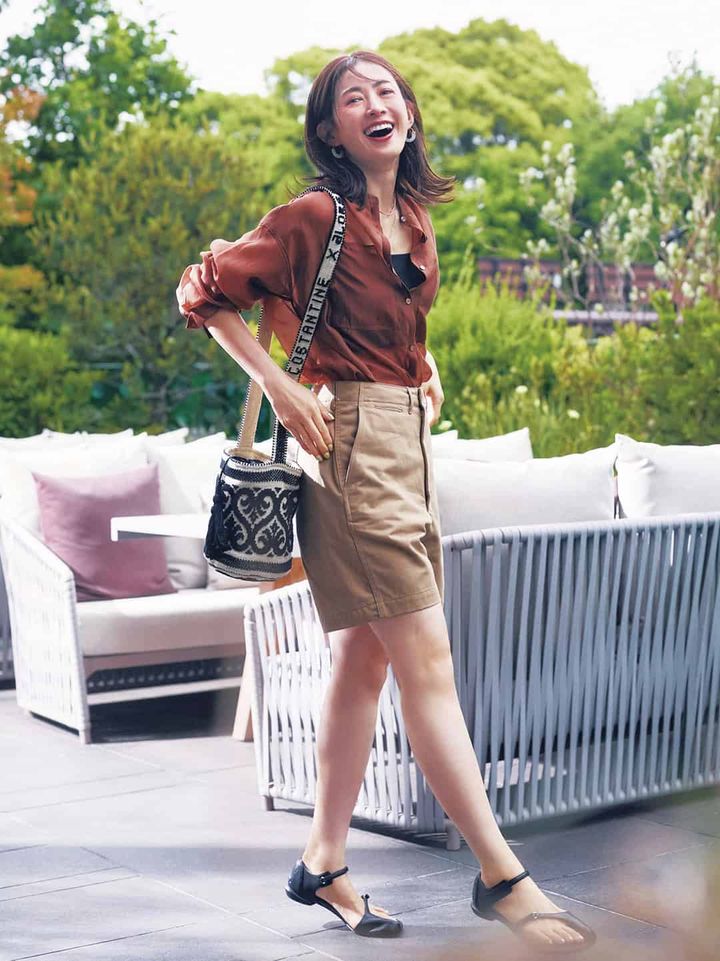 シャツ¥25,300(HER.)バンドゥ¥4,400(Mila Owen / Mila Owen ルミネ新宿2店)ショートパンツ¥27,500(ハイク/ボウルズ)バッグ¥132,000 (レコンスタンティーネ×アロー/アロー)サンダル¥30,800 (シーセイ/アイネックス)ピ アス¥16,500(ルーカス・ジャック・ロンドン/アルアバイル) チェーンネックレス¥49,500 コインネックレス¥25,300(ともにマリハ)