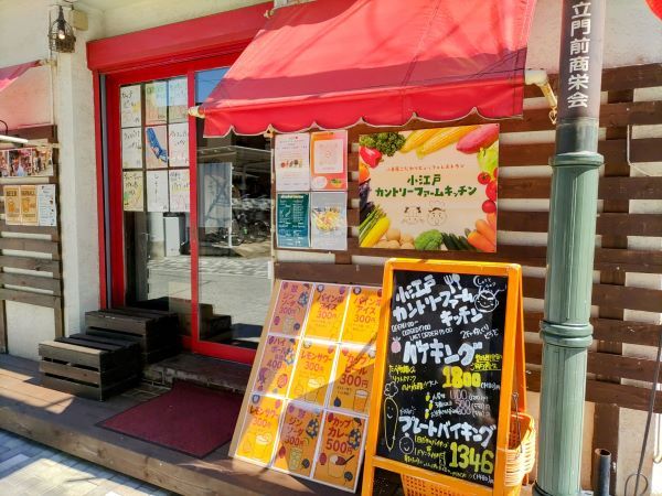 旬の野菜や果物の美味しさを知ってもらいたいと、小江戸・川越に2016年にオープンした八百屋直営の『小江戸カントリーファームキッチン』。 場所は、蓮馨寺前の道をまっすぐ進んで1分ほど。大通りから少し外れた場所にあるので、ゆったりと食事が楽しめます。 夏の暑い時期以外は、店頭で野菜や果物の販売している八百屋さんでもあるのです。