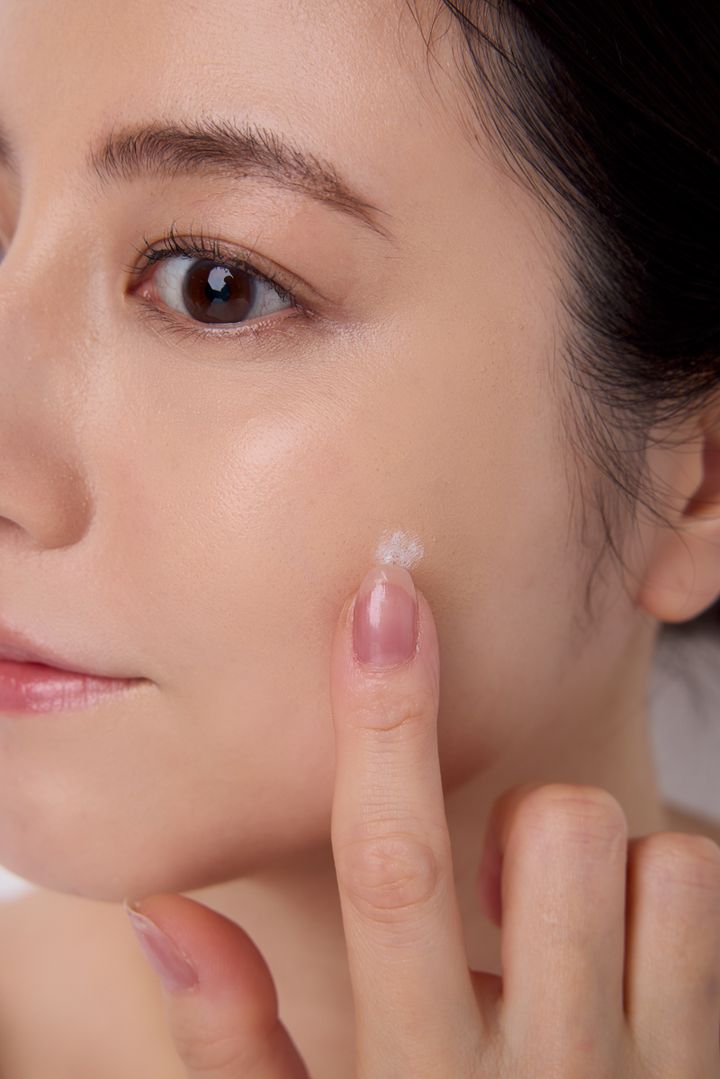 お直しする部分をバームのついた指先で馴染ませて保湿。目元など、動きのある部分は入念に保湿することで、より崩れにくい土台を作ることが可能に。