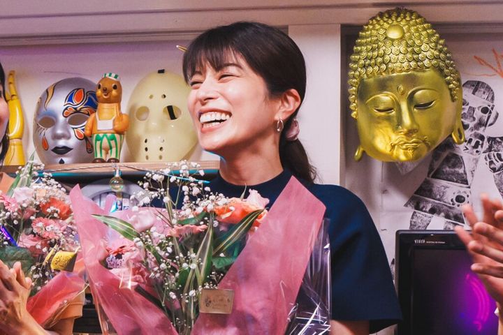 朝山朝子を演じた中村アンは、足立監督から花束を渡されると開口一番、「泣いちゃったー!」「皆さんが全力で作ってくださった朝山家の空間で、朝子さんを生きることができて、本当に充実した時間でした。蝶子も晴太も、そして賢太さんがたくさんサポートしてくださって、無事にクランクアップを迎えられたことをうれしく思います。足立さんの今作は台詞が多くて大変なんですけど、毎日がすごく楽しくて、あたたかくて、お芝居ってもっと自由に、楽しく表現していいんだなと、あらためて感じさせていただきました。ありがとうございました!」