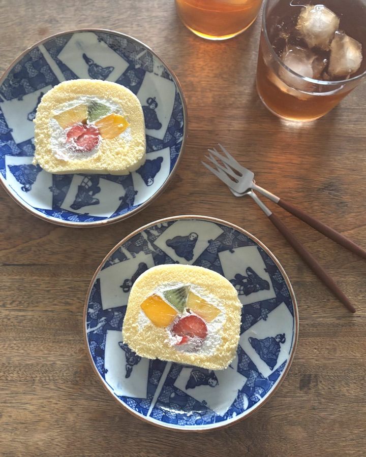 この日は百人一首が描かれた絵皿に千疋屋さんのロールケーキをのせてみました。カトラリーはクチポール。和のうつわに洋菓子って、不思議と相性がいいんですよね。そんな新しい発見も面白くて、すっかり骨董の虜になっています。