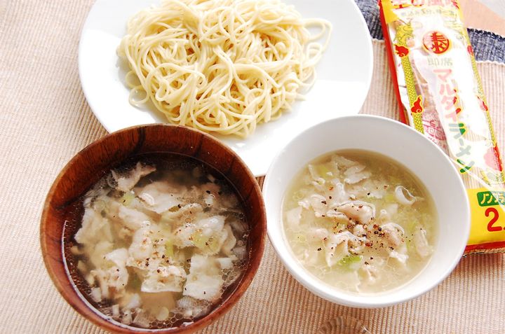 つけ汁は温も冷もレンチン調理!「ねぎ塩豚つけ麺」の材料と作り方