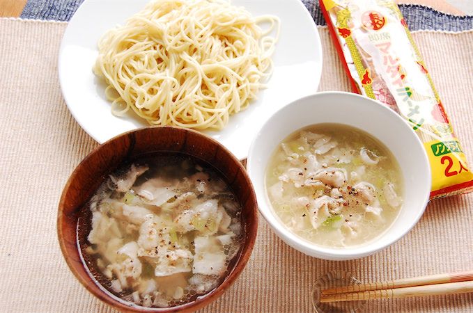 料理研究家のリュウジさんの「ねぎ塩豚つけ麺」は、身近な調味料を使った即席つけ汁にもかかわらず、お店レベルにおいしいつけ麺でした。今回、麺はマルタイラーメンにしましたが、そうめんなどお好みの麺でOKとのことです。