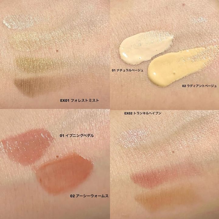 透明感あふれるカラーと潤んだツヤ色を重ねて、くすみがちなまぶたにも明るさと立体感を叶えるアイパレット。明るい色だけを重ねれば抜け感のあるニュアンスに、陰影カラーをきかせれば深みのあるまなざしに。しっとり吸い付くようなテクスチャー、潤いを与えてまもるスキンケア処方で乾燥しがちなまぶたもきれいに発色! カラーは、カーキ系「EX01 フォレストミスト」とピンク系「EX02 トランキルヘイブン」の2種。