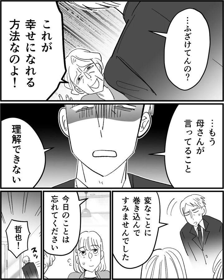 数カ月後、母に呼ばれて夫が向かうと母の知り合いの紹介と言う知らない女性がいました。女性は事情が分からず困惑。母は嫁をかえようと言い出します。異常な母の行動に夫も優子も恐怖を覚えて…?